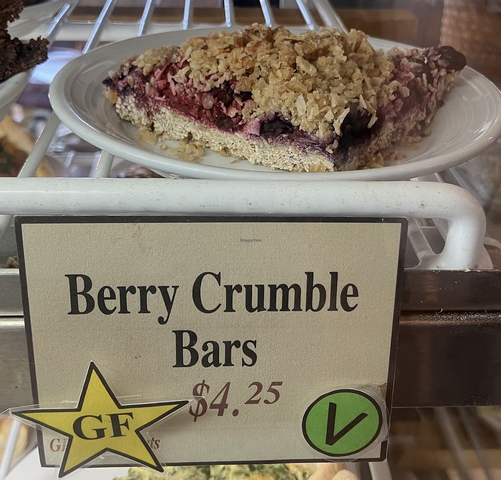 Coffee shop offering a variety of plant-based milk alternatives for beverages as well as vegan cookies and berry crumble bar. Vegan choices are clearly labeled. Open Mon-Fri 7:30am-5:00pm, Sat-Sun 7:30am-6:00pm.