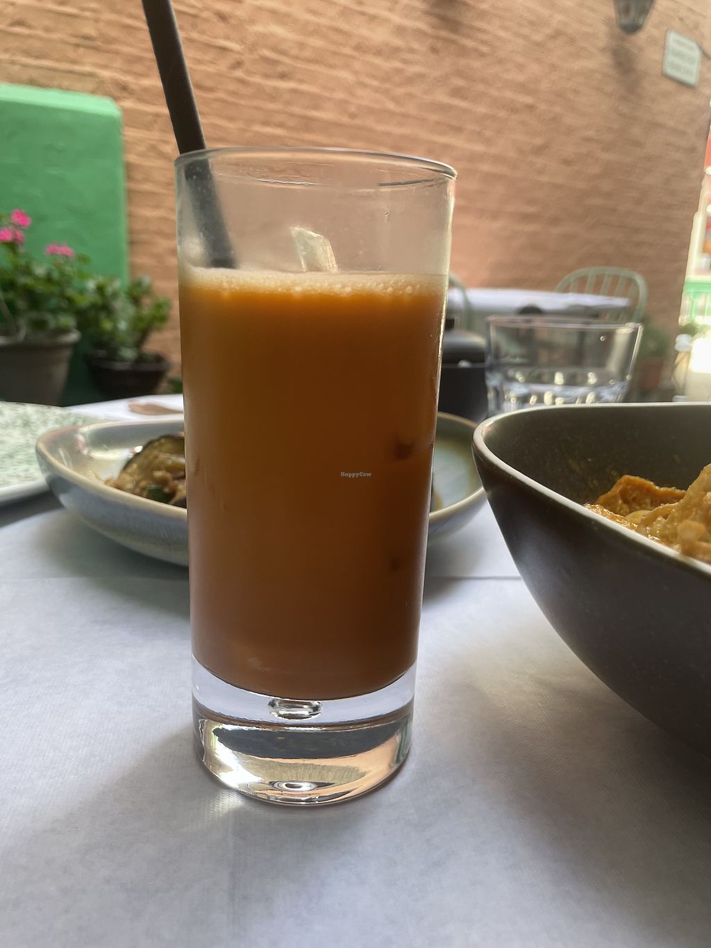 We ordered the tom yum soup with 'pork' and 'beef' in red curry with brussel sprouts. Both dishes were bursting with flavor and I highly recommend them both. The boozy Thai tea was also a highlight. It was lovely to sit outside in the pretty small courtyard too.