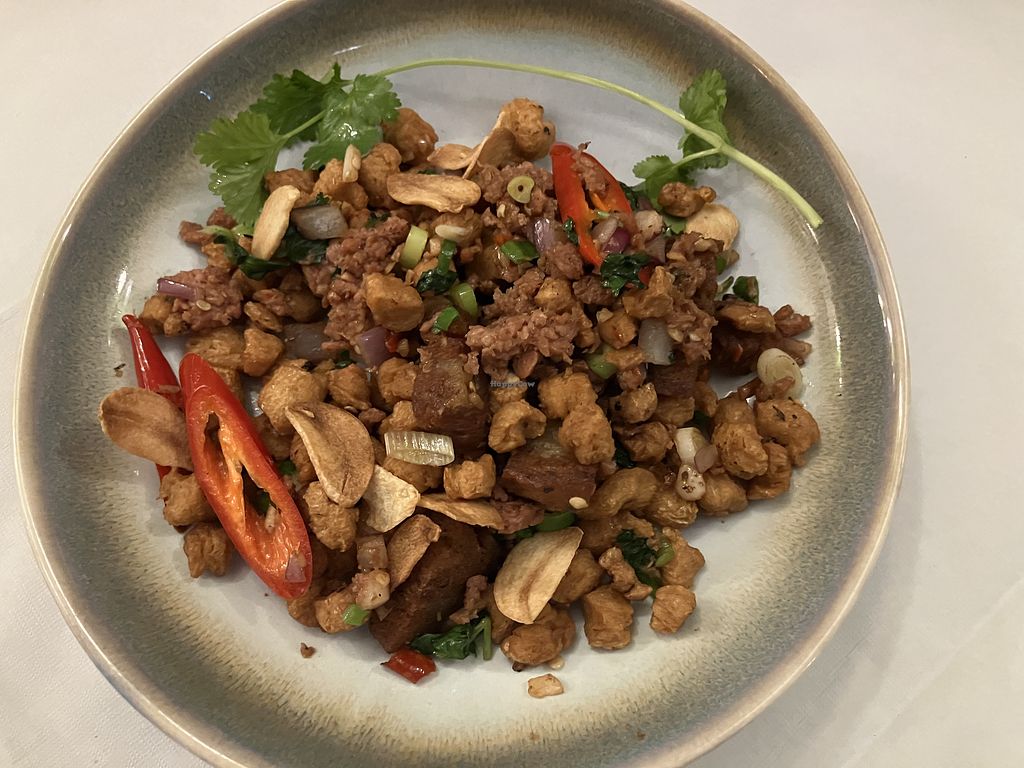 The atmosphere and staff were pleasant, but it wasn't a satisfying meal. The Kao Pad Nuea Kem Tip (stir fried rice with vegan salted beef) was good enough, but the portion was small for the price. The Sam Moo Tip Kua Prik (vegan crispy pork) was so dry and overpriced.
